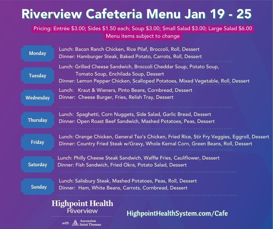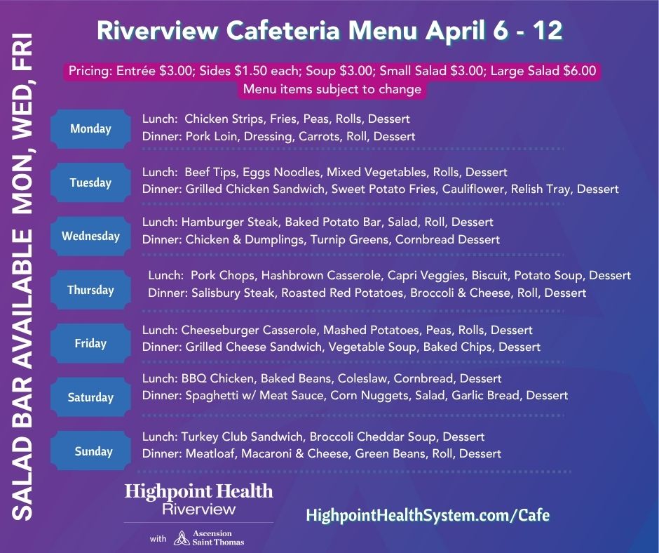 Highpoint Health – Riverview's Cafeteria is open to the public!